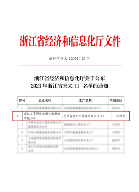 2024:“DB真人能源户用储能系统”上榜浙江省未来工厂